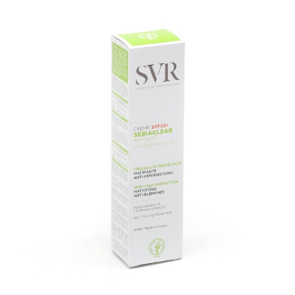 كريم واقي شمس بعامل حماية 50+ من SVR:ينظم إنتاج الزهم عن طريق تقشير الجلدمع حمايته من الأشعة فوق البنفسجية A وUVB والأشعة فوق البنفسجية.