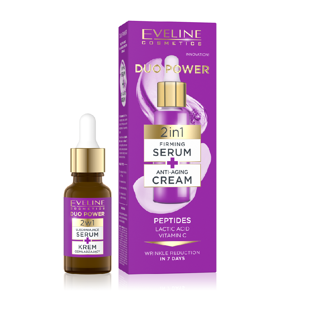 اكتشفي سر جمال بشرتك مع تركيبة Duo Power 2in1! تجمع هذه التركيبة الفريدة بين فعالية مصل شد البشرة وكريم تجديد البشرة، لتمنحك نتائج مذهلة بسرعة.