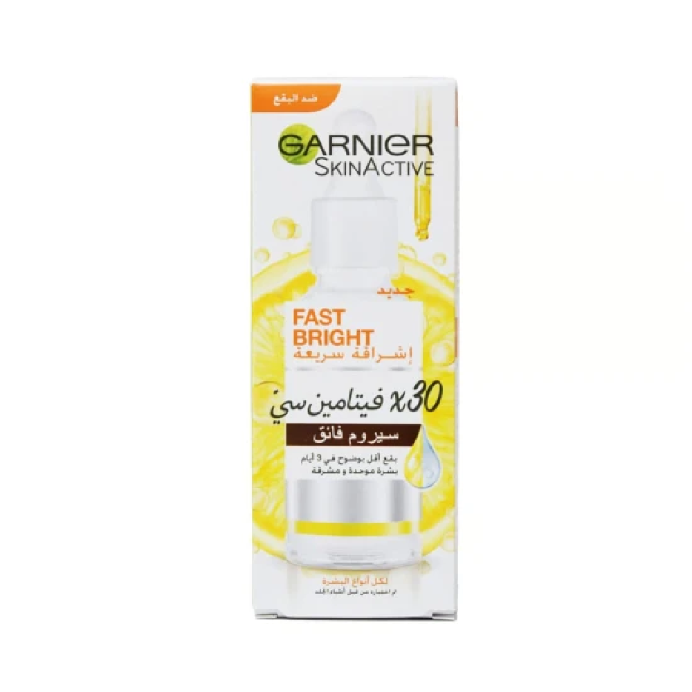 الوصف: غارنييه سكين أكتيف سيروم فائق إشراقة سريعة بفيتامين سي هو منتج تجميلي مصمم لتحسين إشراقة البشرة وتوحيد لونها. يحتوي هذا السيروم على تركيبة مركزة من فيتامين سي المعروف بفوائده الفعّالة في تقليل البقع الداكنة وتعزيز نضارة البشرة.
