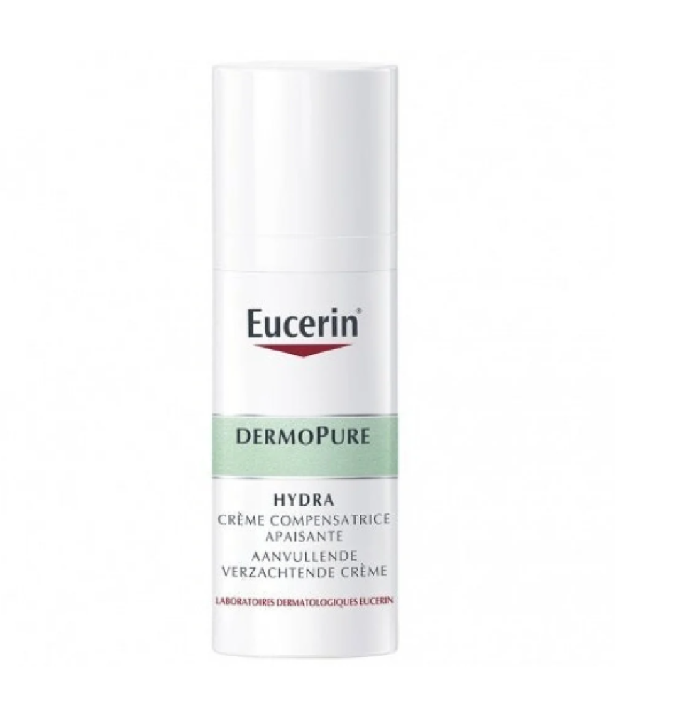 - يقلل كريم Eucerin DermoPure Hydra Soothing المعوض 50 مل من الآثار الجانبية لعلاجات الجلد التي تسبب الجفاف.