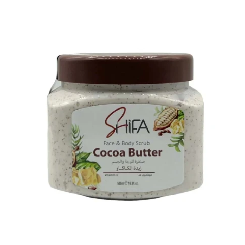 صنفرة شفا للوجه والجسم بزبدة الكاكاو وفيتامين E – تنظيف عميق وترطيب فائق لبشرة ناعمة ومتجددة